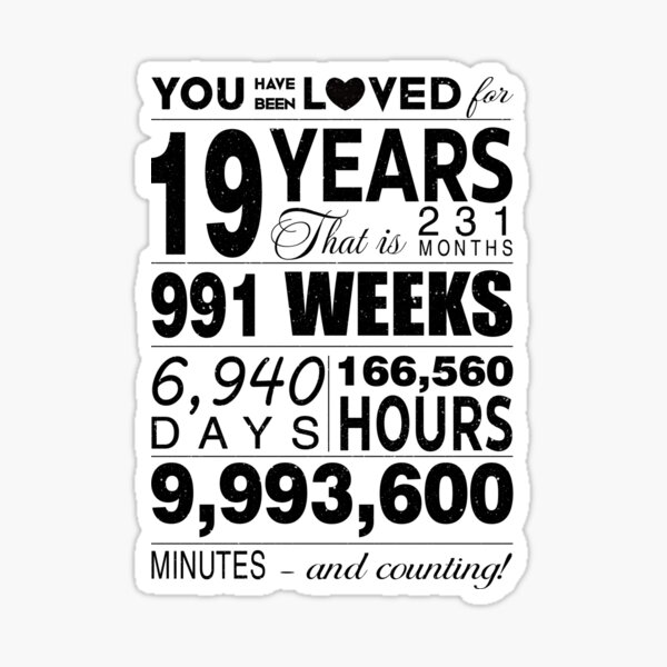 19 Years You Have Been Loved For 19 Years Celebration For 19th Birthday Party 19th Anniversary Birthday Gifts Sticker Von Daviddavid1996 Redbubble